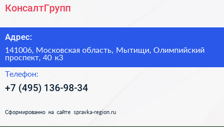 КонсалтГрупп по адресу 141006, Московская область, Мытищи, Олимпийский проспект, 40 к3 в дальнейшем Организация, размещена в следующих категориях:
