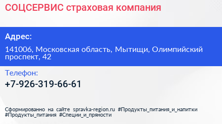 СОЦСЕРВИС, страховая компания по адресу 141006, Московская область, Мытищи, Олимпийский проспект, 42 в дальнейшем Организация, размещена в следующих категориях: