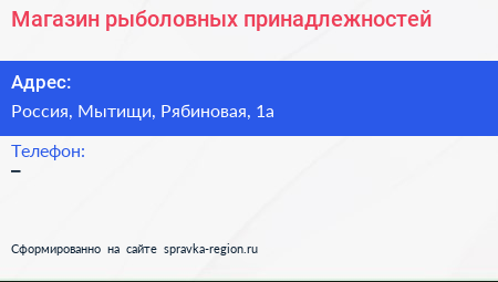 Магазин рыболовных принадлежностей по адресу Лесовичок, 7А, Осташковское шоссе, Новая Деревня, Туристический Пансионат "Клязьминское водохранилище", городской округ Мытищи, Московская область, Центральный федеральный округ, 141036, Россия в дальнейшем Организация, размещена в следующих категориях: