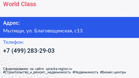 World Class по адресу Мытищи, ул. Благовещенская, с13 в дальнейшем Организация, размещена в следующих категориях: