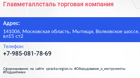 Главметаллсталь, торговая компания по адресу 141006, Московская область, Мытищи, Волковское шоссе, вл15 ст2 в дальнейшем Организация, размещена в следующих категориях: