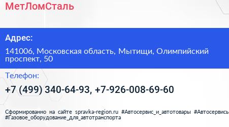 МетЛомСталь по адресу 141006, Московская область, Мытищи, Олимпийский проспект, 50 в дальнейшем Организация, размещена в следующих категориях: