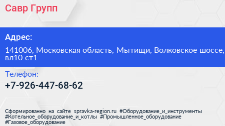 Савр Групп по адресу 141006, Московская область, Мытищи, Волковское шоссе, вл10 ст1 в дальнейшем Организация, размещена в следующих категориях: