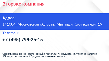 Вторэкс, компания по адресу 141004, Московская область, Мытищи, Силикатная, 19 в дальнейшем Организация, размещена в следующих категориях: