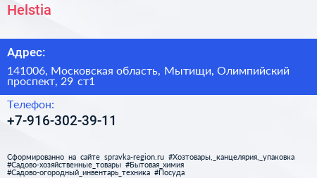 Helstia по адресу 141006, Московская область, Мытищи, Олимпийский проспект, 29 ст1 в дальнейшем Организация, размещена в следующих категориях:
