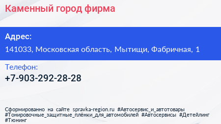 Каменный город, фирма по адресу 141033, Московская область, Мытищи, Фабричная, 1 в дальнейшем Организация, размещена в следующих категориях: