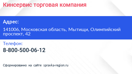Кинсервис, торговая компания по адресу 141006, Московская область, Мытищи, Олимпийский проспект, 42 в дальнейшем Организация, размещена в следующих категориях: