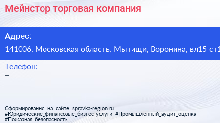 Мейнстор, торговая компания по адресу 141006, Московская область, Мытищи, Воронина, вл15 ст1 в дальнейшем Организация, размещена в следующих категориях: