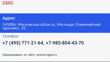 DMG по адресу 141006, Московская область, Мытищи, Олимпийский проспект, 33 в дальнейшем Организация, размещена в следующих категориях: