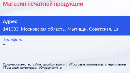 Магазин печатной продукции по адресу 141033, Московская область, Мытищи, Советская, 1а в дальнейшем Организация, размещена в следующих категориях: