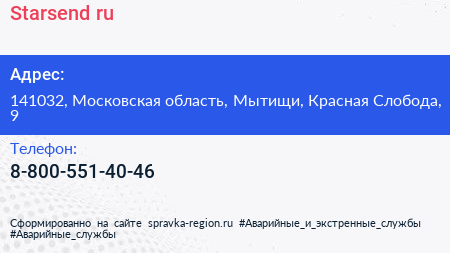 Starsend.ru по адресу 141032, Московская область, Мытищи, Красная Слобода, 9 в дальнейшем Организация, размещена в следующих категориях: