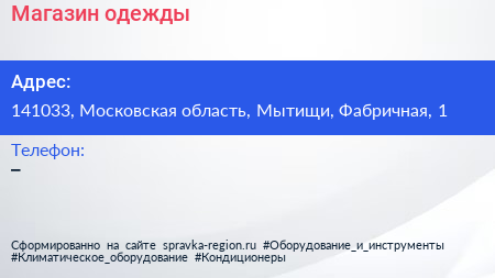 Магазин одежды по адресу 141033, Московская область, Мытищи, Фабричная, 1 в дальнейшем Организация, размещена в следующих категориях: