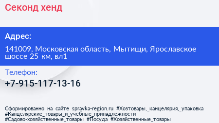 Секонд-хенд по адресу 141009, Московская область, Мытищи, Ярославское шоссе 25 км, вл1 в дальнейшем Организация, размещена в следующих категориях: