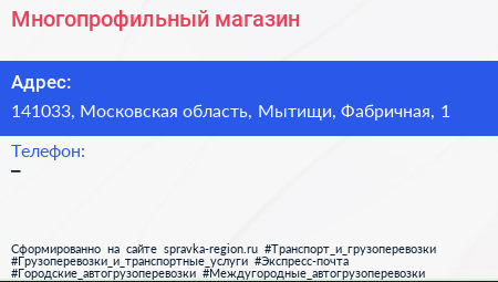 Многопрофильный магазин по адресу 141033, Московская область, Мытищи, Фабричная, 1 в дальнейшем Организация, размещена в следующих категориях: