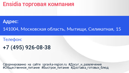Ensidia, торговая компания по адресу 141004, Московская область, Мытищи, Силикатная, 15 в дальнейшем Организация, размещена в следующих категориях: