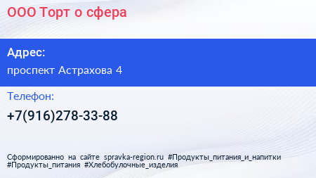 ООО Торт о сфера по адресу проспект Астрахова 4 в дальнейшем Организация, размещена в следующих категориях: