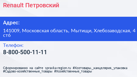 Renault Петровский по адресу 141009, Московская область, Мытищи, Хлебозаводская, 4 ст6 в дальнейшем Организация, размещена в следующих категориях: