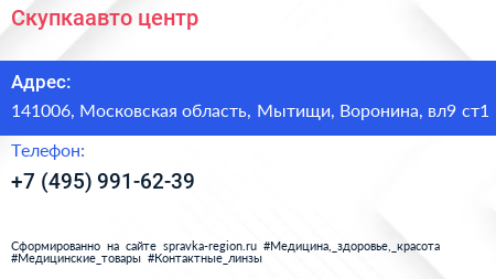 Скупкаавто, центр по адресу 141006, Московская область, Мытищи, Воронина, вл9 ст1 в дальнейшем Организация, размещена в следующих категориях: