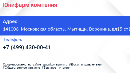 Юнифарм, компания по адресу 141006, Московская область, Мытищи, Воронина, вл15 ст1 в дальнейшем Организация, размещена в следующих категориях: