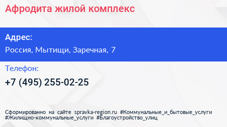 Афродита, жилой комплекс по адресу 7, Заречная улица, Жилой комплекс «Афродита», посёлок Мебельной Фабрики, Пирогово, городской округ Мытищи, Московская область, Центральный федеральный округ, 141033, Россия в дальнейшем Организация, размещена в следующих категориях: