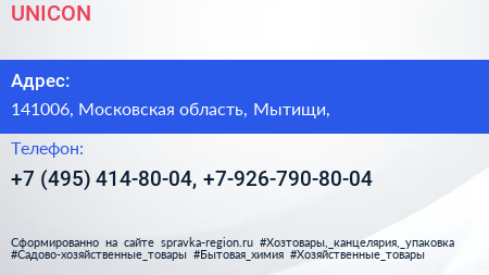 UNICON по адресу 141006, Московская область, Мытищи, в дальнейшем Организация, размещена в следующих категориях: