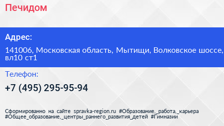Печидом по адресу 141006, Московская область, Мытищи, Волковское шоссе, вл10 ст1 в дальнейшем Организация, размещена в следующих категориях: