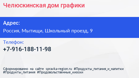 Для связи с организацией воспользуйтесь номером телефона: +7-916-188-11-98.