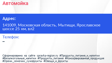 Автомойка по адресу 141009, Московская область, Мытищи, Ярославское шоссе 25 км, вл2 в дальнейшем Организация, размещена в следующих категориях: