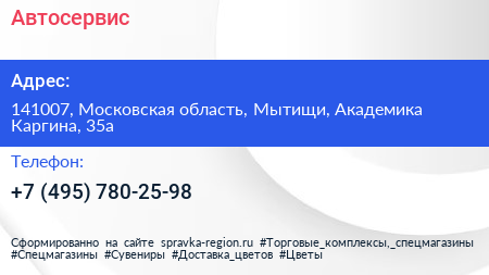 Автосервис по адресу 141007, Московская область, Мытищи, Академика Каргина, 35а в дальнейшем Организация, размещена в следующих категориях: