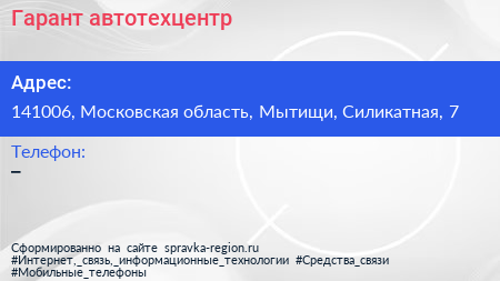 Гарант, автотехцентр по адресу 141006, Московская область, Мытищи, Силикатная, 7 в дальнейшем Организация, размещена в следующих категориях: