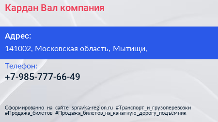 Кардан-Вал, компания по адресу 141002, Московская область, Мытищи, в дальнейшем Организация, размещена в следующих категориях: