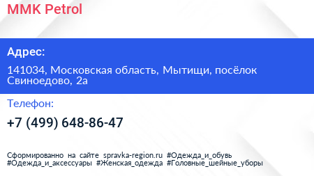 MMK Petrol по адресу 141034, Московская область, Мытищи, посёлок Свиноедово, 2а в дальнейшем Организация, размещена в следующих категориях: