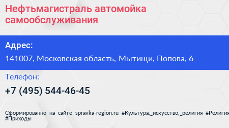 Нефтьмагистраль, автомойка самообслуживания по адресу 141007, Московская область, Мытищи, Попова, 6 в дальнейшем Организация, размещена в следующих категориях: