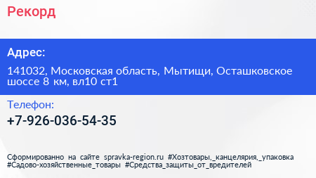Рекорд по адресу 141032, Московская область, Мытищи, Осташковское шоссе 8 км, вл10 ст1 в дальнейшем Организация, размещена в следующих категориях: