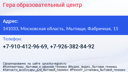 Гера, образовательный центр по адресу 141033, Московская область, Мытищи, Фабричная, 15 в дальнейшем Организация, размещена в следующих категориях: