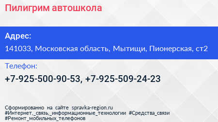 Пилигрим, автошкола по адресу 141033, Московская область, Мытищи, Пионерская, ст2 в дальнейшем Организация, размещена в следующих категориях: