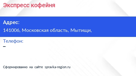 Экспресс-кофейня по адресу 141006, Московская область, Мытищи, в дальнейшем Организация, размещена в следующих категориях: