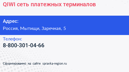 QIWI, сеть платежных терминалов по адресу 5, Заречная улица, Жилой комплекс «Афродита», посёлок Мебельной Фабрики, Пирогово, городской округ Мытищи, Московская область, Центральный федеральный округ, 141033, Россия в дальнейшем Организация, размещена в следующих категориях: