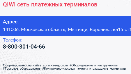 QIWI, сеть платежных терминалов по адресу 141006, Московская область, Мытищи, Воронина, вл15 ст1 в дальнейшем Организация, размещена в следующих категориях: