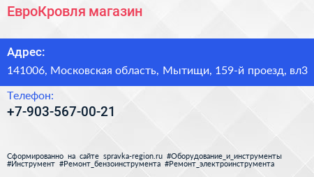 ЕвроКровля, магазин по адресу 141006, Московская область, Мытищи, 159-й проезд, вл3 в дальнейшем Организация, размещена в следующих категориях: