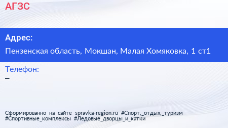 АГЗС по адресу Пензенская область, Мокшан, Малая Хомяковка, 1 ст1 в дальнейшем Организация, размещена в следующих категориях: