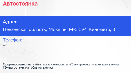 Адрес: Пензенская область, Мокшан, М-5 594 Километр, 3