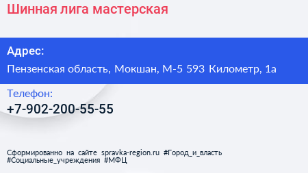 Шинная лига, мастерская по адресу Пензенская область, Мокшан, М-5 593 Километр, 1а в дальнейшем Организация, размещена в следующих категориях: