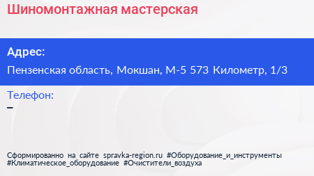 Шиномонтажная мастерская по адресу Пензенская область, Мокшан, М-5 573 Километр, 1/3 в дальнейшем Организация, размещена в следующих категориях: