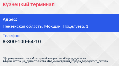Кузнецкий, терминал по адресу Пензенская область, Мокшан, Поцелуева, 1 в дальнейшем Организация, размещена в следующих категориях: