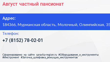 Август, частный пансионат по адресу 184366, Мурманская область, Молочный, Олимпийская, 35 в дальнейшем Организация, размещена в следующих категориях: