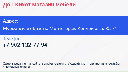 Дон Кихот, магазин мебели по адресу Мурманская область, Мончегорск, Кондрикова, 30а/1 в дальнейшем Организация, размещена в следующих категориях: