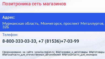 Позитроника, сеть магазинов по адресу Мурманская область, Мончегорск, проспект Металлургов, 32Б в дальнейшем Организация, размещена в следующих категориях:
