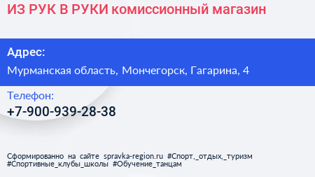 ИЗ РУК В РУКИ, комиссионный магазин по адресу Мурманская область, Мончегорск, Гагарина, 4 в дальнейшем Организация, размещена в следующих категориях: