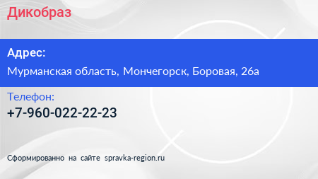 Дикобраз по адресу Мурманская область, Мончегорск, Боровая, 26а в дальнейшем Организация, размещена в следующих категориях: